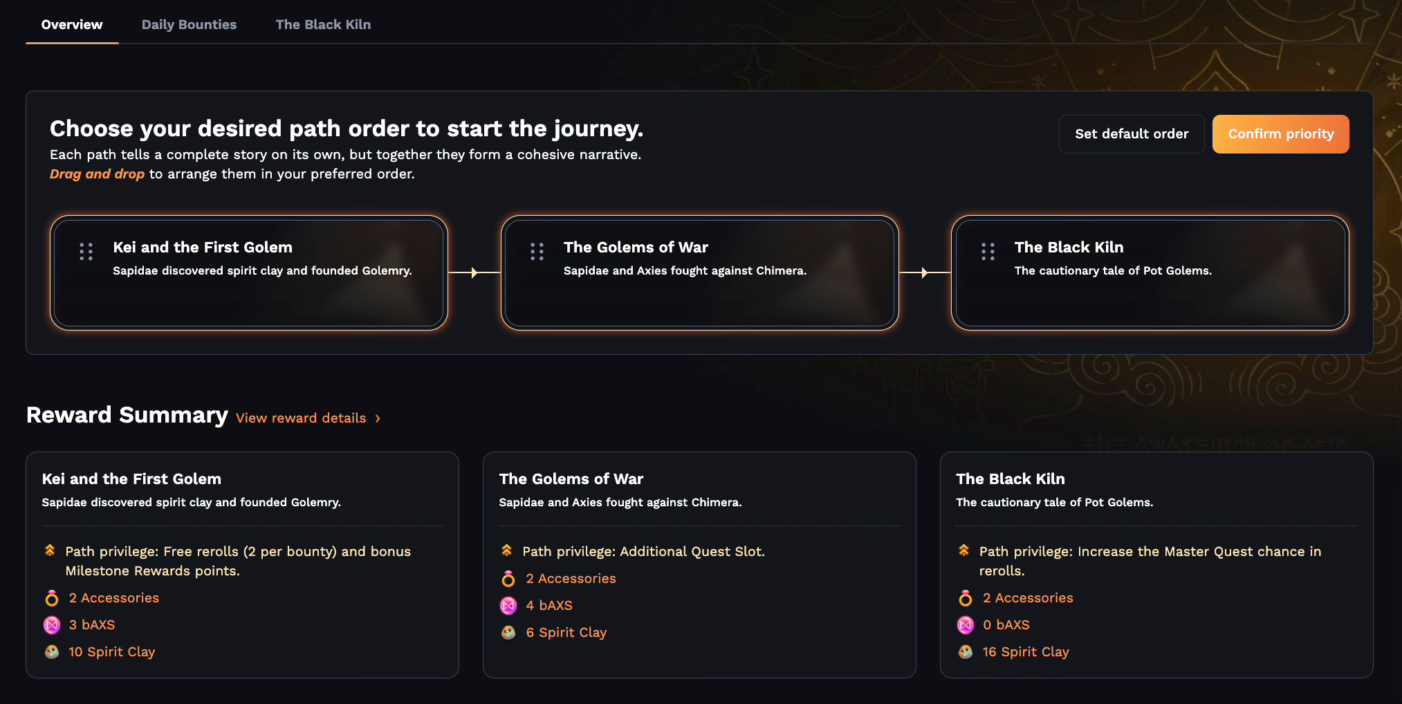 When you open the Codex for the first time, you won’t jump straight into quests. You’ll choose the order you want to experience the paths. Drag, drop, set your priority. The order you choose matters because each path unlocks a unique set of perks and rewards as you progress.