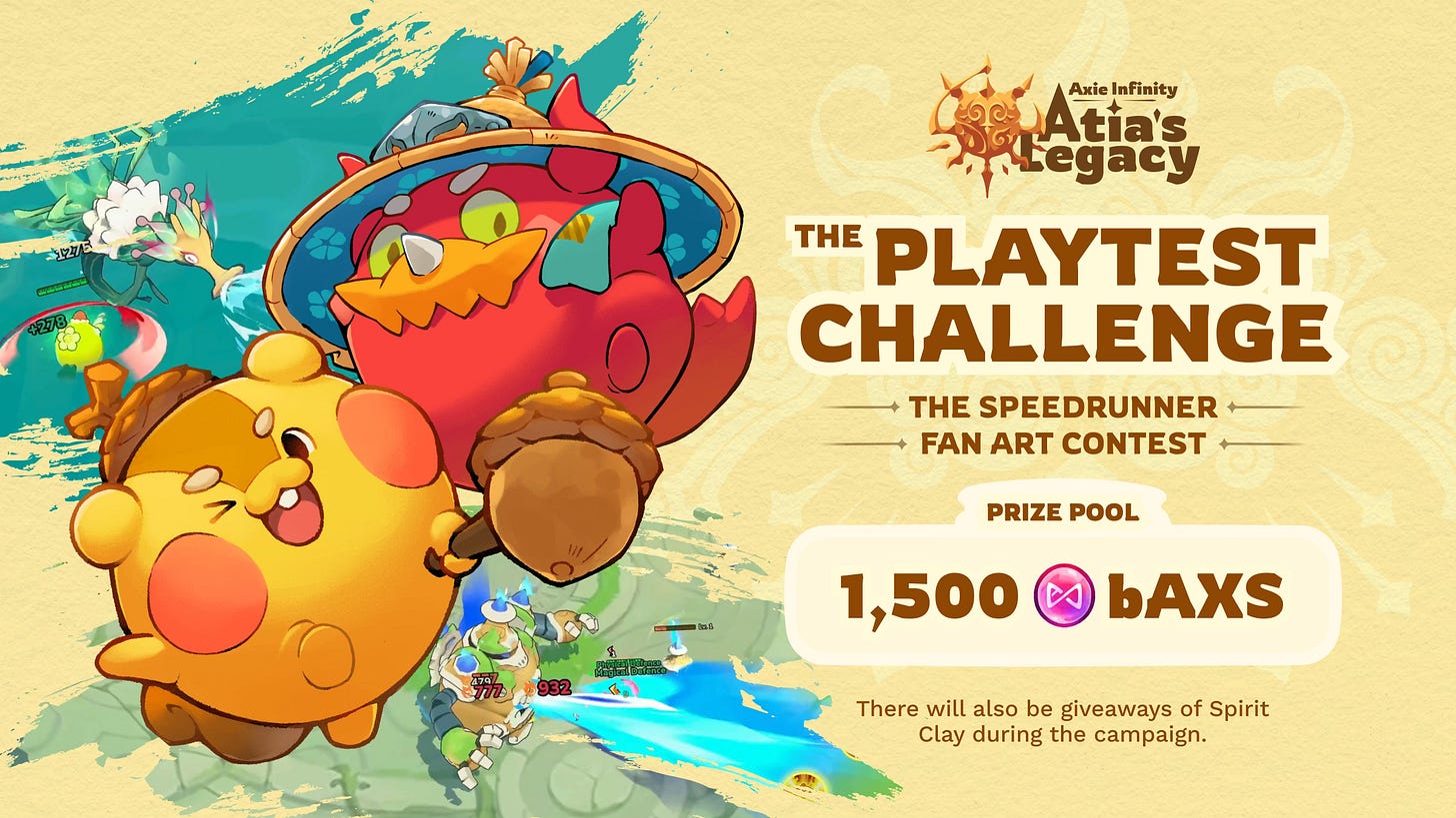 Playtest Challenge & Livestream: Compete in the Speedrunner challenge and Fan Art Contest for a total prize pool of 1,500 bAXS. Want to experience the game but don’t have access? Join us on Discord Stage at 10:30 PM PHT / 9:30 AM EST to watch @Jihoz_Axie, @JaseTheWizard, and @Cruise_SM play Atia’s Legacy live!