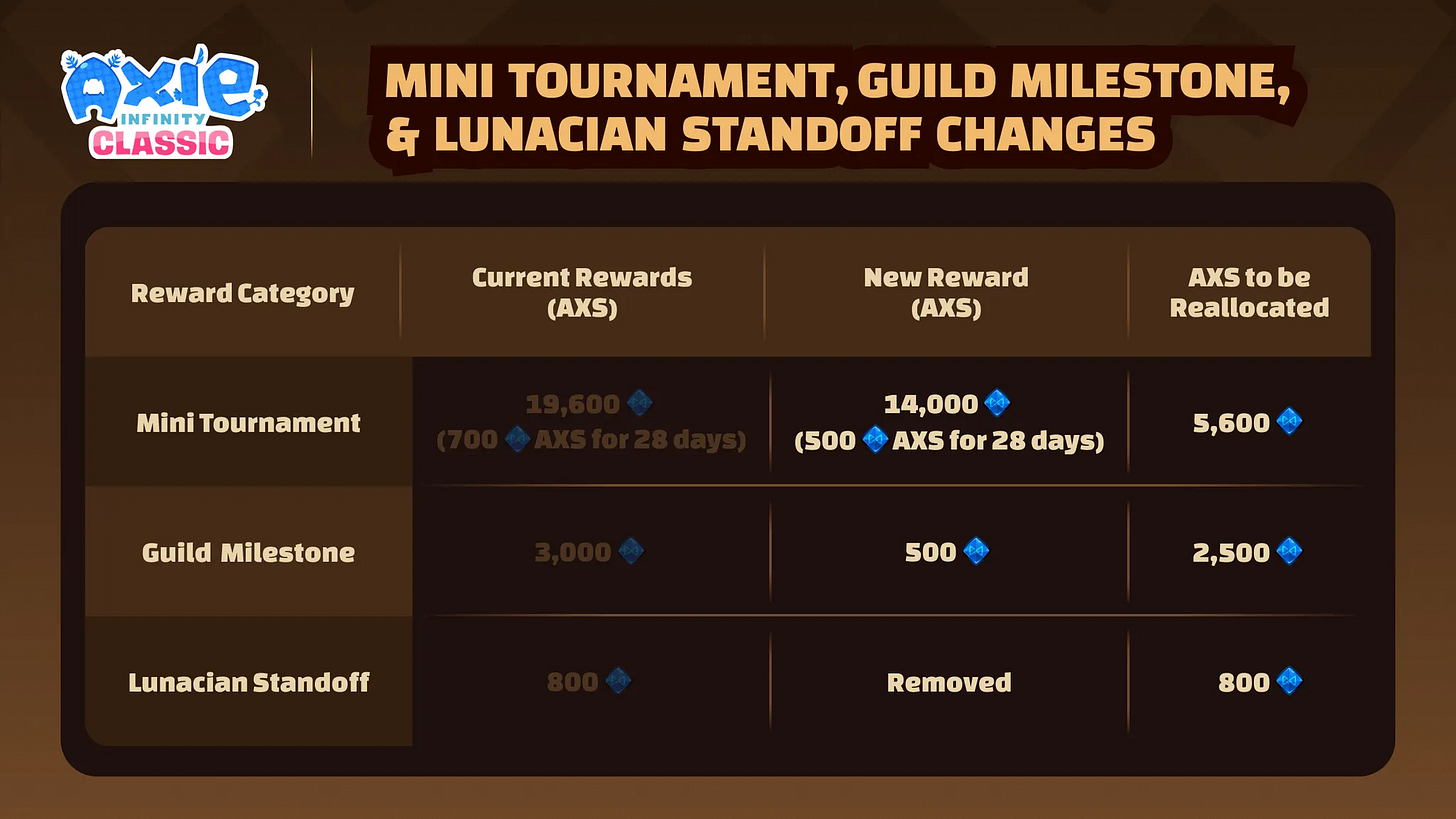 These updates will free up about 8,900 AXS, which we’ll reallocate to the Arena and Guild Leaderboards. This will ensure fairer distribution of rewards for players.