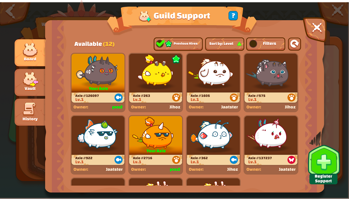 Providing opportunities for web2 players to try the game through axie delegation or Guild Axie Vault.