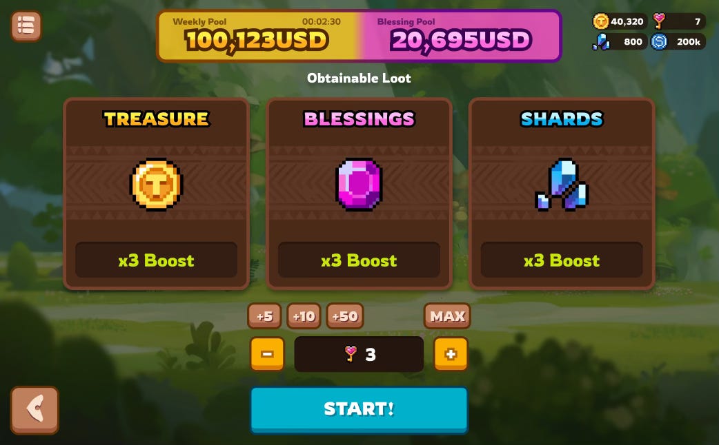 Buy Keys → Enter the Den → Find Treasure, Shards, and Blessings → Earn weekly rewards.