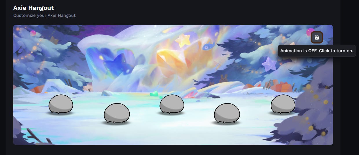 Toggle animations on or off: Look for the option to animate or freeze your new background on App.axie. Remember: You’ll have to earn the background first before toggling it off or on!