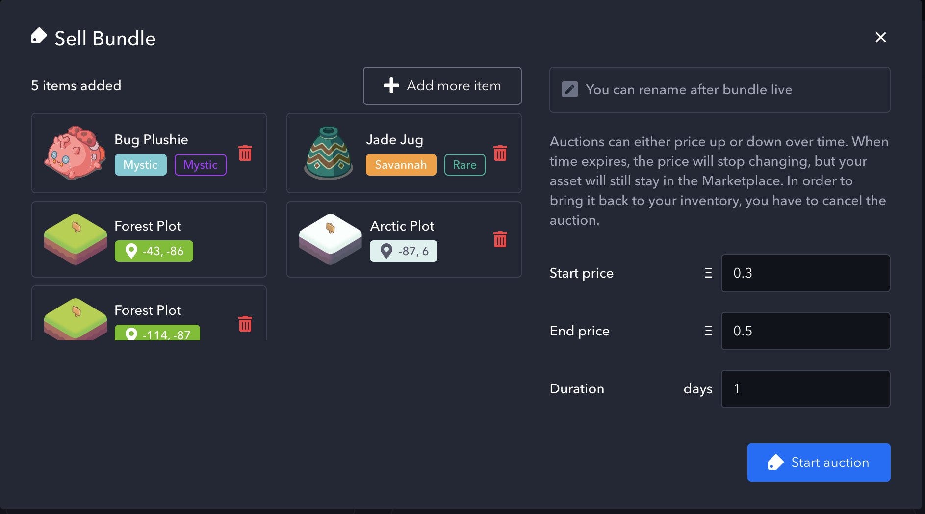 After many requests from the community, we've added bundles for land and items to the market at https://marketplace.axieinfinity.com/bundle!
