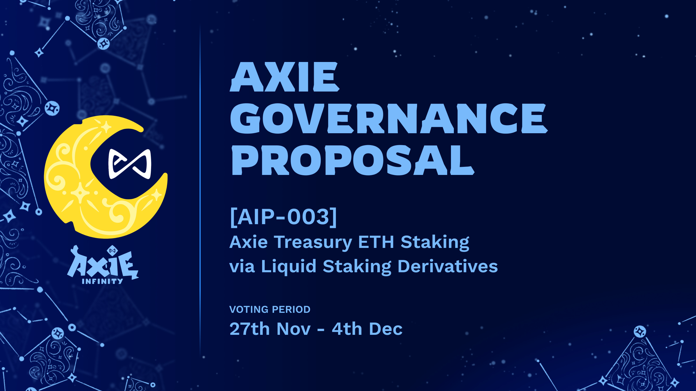 Lunacians, our digital nation needs YOU to cast a vote soon! AIP-003 is a proposal to put the Axie Infinity Treasury’s ETH to work. We’ll take a Voting Power snapshot next week, and the voting period will start a few days after that.. We’ve also released a Voting Delegation feature on App.axie to make it easier for more community members to have their voice heard. Here’s what’s happening: