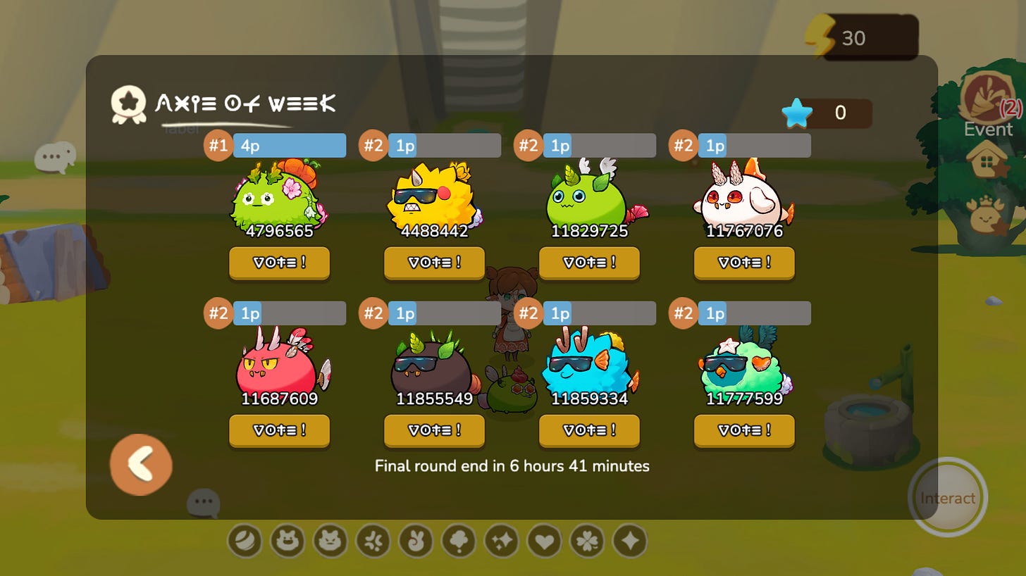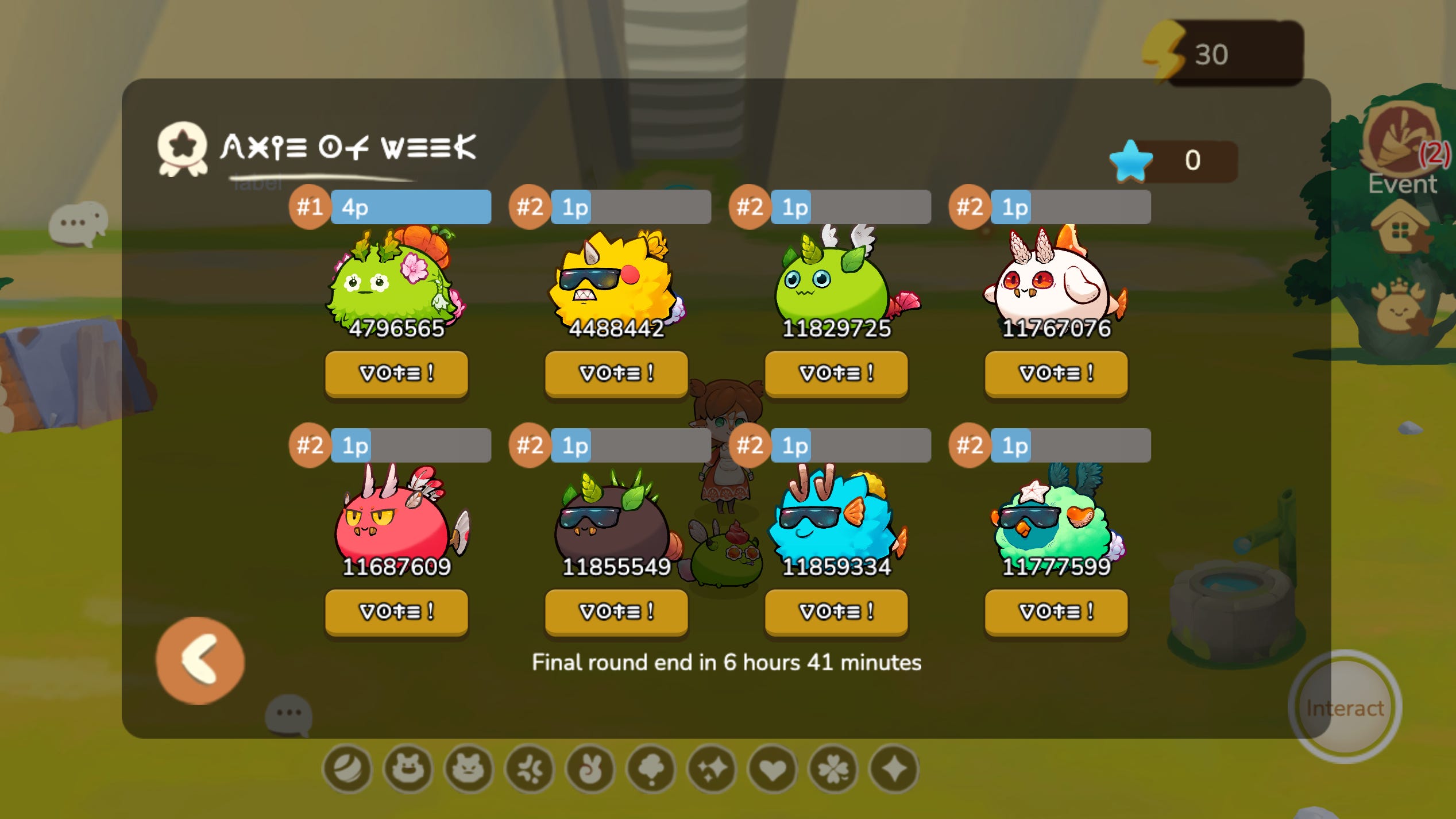 Friday - Sunday: other players use [blue fame] to vote for their favorite axie