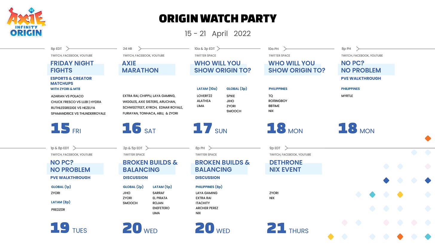 Origin’s adventure mode brings a sense of light-hearted fun to Axie! We want to give everyone the chance to experience it now, including mobile-only players. Join Zyori, Predz0r, and Myrtle on stream as they live-stream an adventure mode walkthrough, from start to finish!