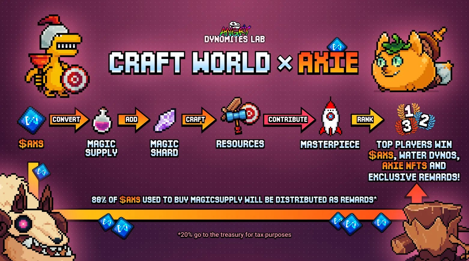 The Angry Dynomites <> Axie event is LIVE! Jump into Craft World for a chance to win part of a $10K prize pool. Collectible axie holders will also start the event with a massive speed boost. Here’s what’s happening: