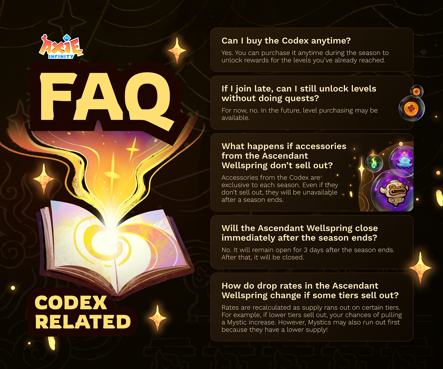 The Codex is a new battle pass system available on App.axie. Complete bounties → Unlock and complete quests → Earn points → Secure rewards. Thousands of Lunacians have begun their Codex journey, and we want to make sure nobody missed out on rewards. Here are a few things to keep in mind:
