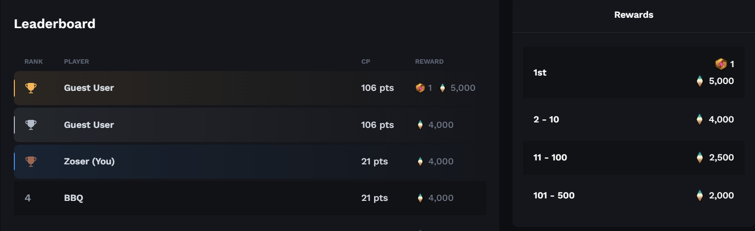 The first contest is simple & accessible. Everyone already playing Origins will earn rewards just by playing as they normally would! Future Contests will include a more challenging mix of missions like breeding, releasing, and using certain body parts or special axies. Plus, they'll consist of both in-game and on-chain missions.